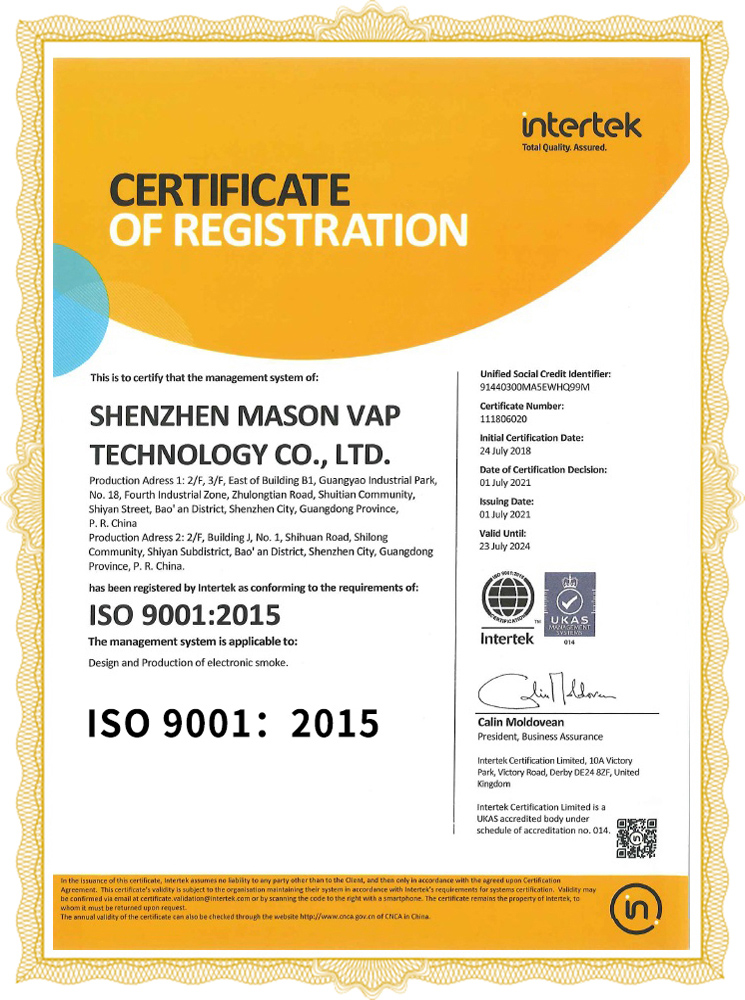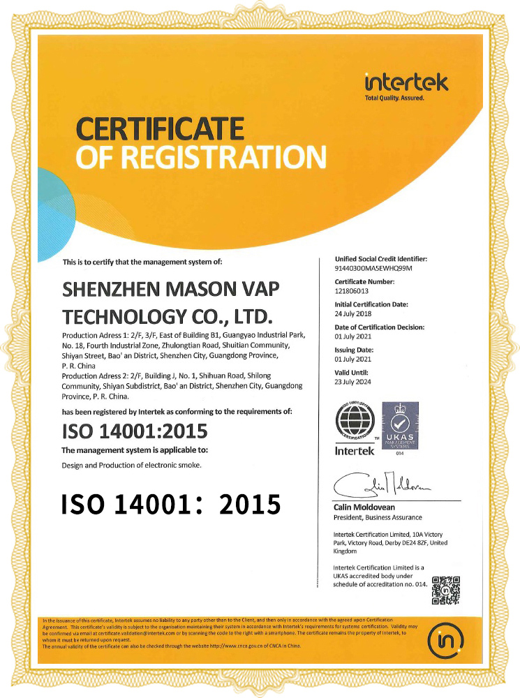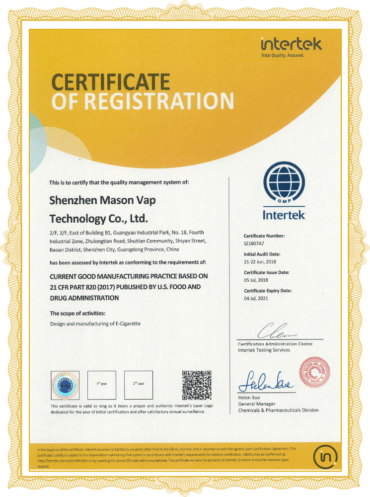 Shenzhen EXE WORLD Technology Co., Ltd. is a high-tech innovative enterprise established in 2017 under YUTO Group, located in Shenzhen. Our company insists on not making its own brand and focuses on e-cigarette OEM/ODM, with about 2000 employees, 20,300㎡ of medical-grade dust-free workshop and 200,000㎡ of new planning wisdom production base. Our company has an independent laboratory and atomization research institute, with more than 150 sets of experimental equipment, more than 500 experimental items, covering the process from material selection, prototype, incoming inspection, production, shipping, etc. The experimental items of the CNAS level laboratory can cover the needs of China, the United States and other countries on the research and development of electronic cigarettes and production process of safety research and testing regulations. We have a perfect quality control system, successfully registered with FDA, and have ISO9001, ISO14001, ISO13485 quality control system, cGMP current good practice certificates. At the same time, our company has built a full process information management system, including ERP, OA, ISP, HRS and MES, covering the whole process from R&D, incoming materials, production to shipping. Relying on lean production concept and automation, EXE WORLD provides higher quality than the industry standard, which is fully affirmed and highly appreciated by customers at home and abroad.